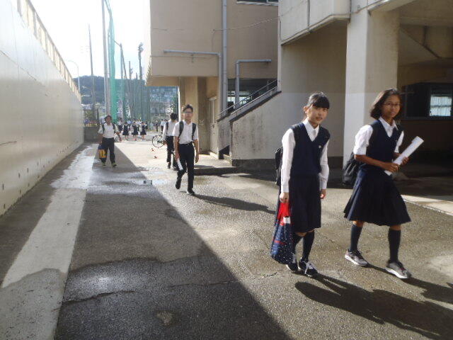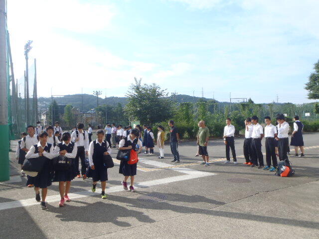 10時40分から集団下校訓練が行われました。学年ごとではなく、地区別に交代に集合しますので、集合場所に悩む生徒もいました。