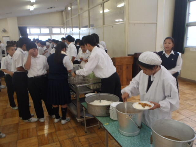 おかわりは、各自で行います。たくさん食べて、基礎体力をつけましょう。