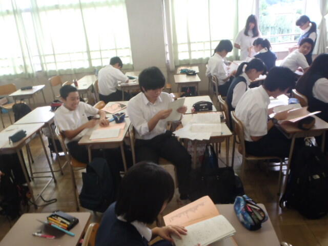 いつもは1組と2組を三つのクラスに分けて授業が行われますが、今日は特別にクラスごとの授業となりました。2組は教室で髙原先生による授業となりました。