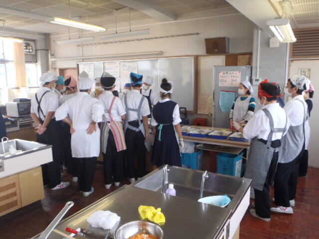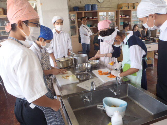 保護者の皆様が参観しているので、調理する手も緊張気味です。