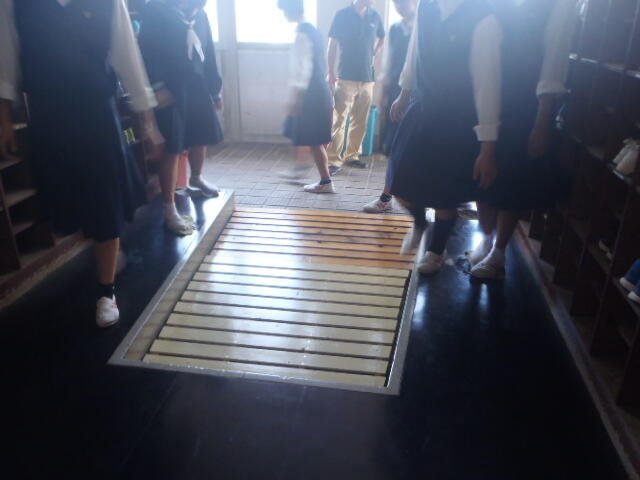雨が降りそうに空もようでしたが、元気なあいさつが響いていました。