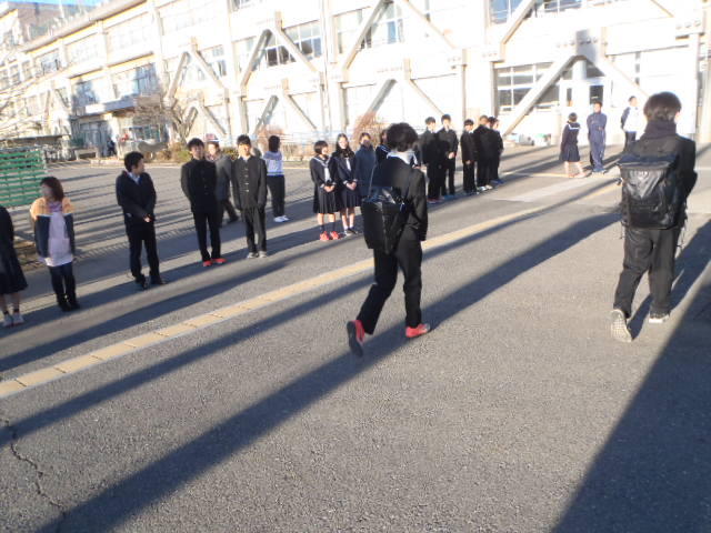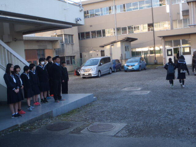 今日から三学期がスタートしました。校歌斉唱の後、校長先生の講話、吹奏楽部の表彰、生活指導主任の田村先生からの諸注意がありました。