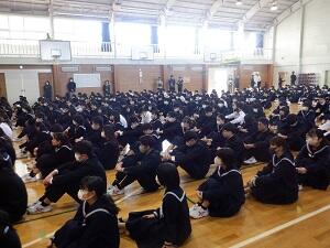 令和6年2月16日(金)生徒朝礼・1年ハローワーク講話・「七生中☆平山中合同クリーン大作戦」