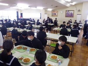 〇今年度から、1年生は食堂で給食を食べます。食堂での給食は数年ぶりです。たくさんおかわりをして、もりもり食べてください。