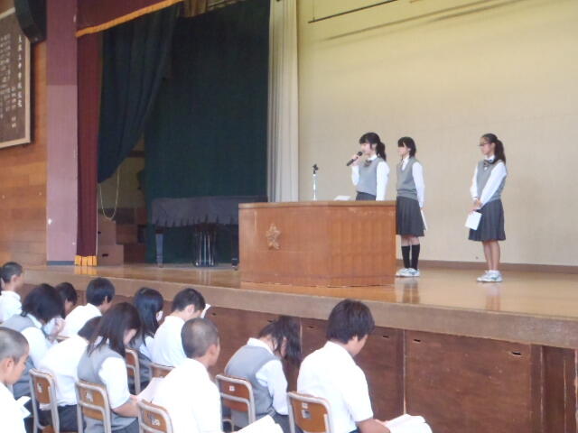 新生徒会役員の皆さんには、次期大坂上中学校のリーダーとして活躍してくれることを期待します。