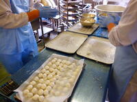 一つずつ団子をこねて丸めて、
